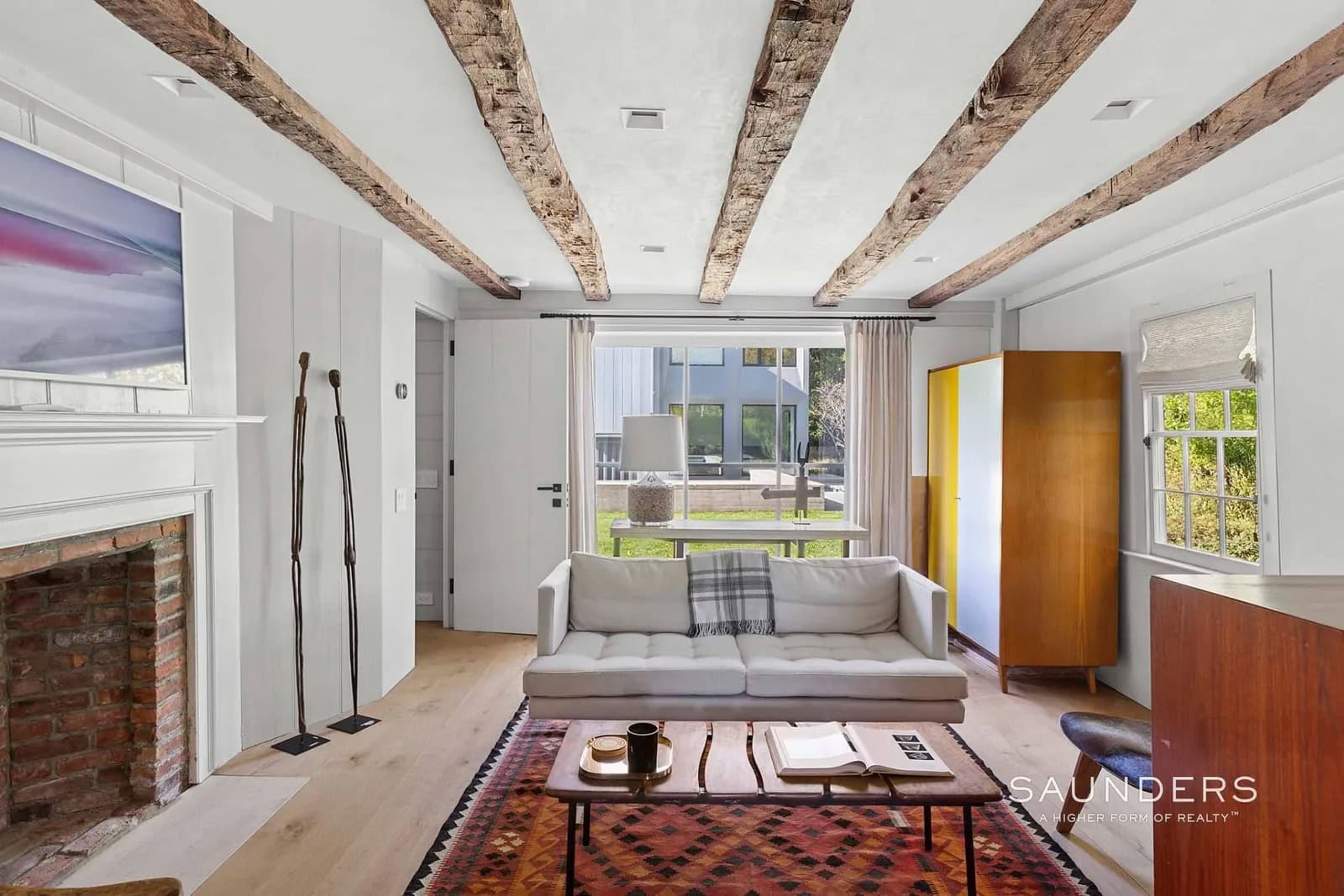 The timeless charm of the now-restored Sanford House is retained with the weathered texture of original timber beams original exposed beams, wide‑plank hardwood floors, and twin fireplaces. Classic period details include a Rumford cooking hearth while discrete modern upgrades ensure the home will accommodate generations to come.
