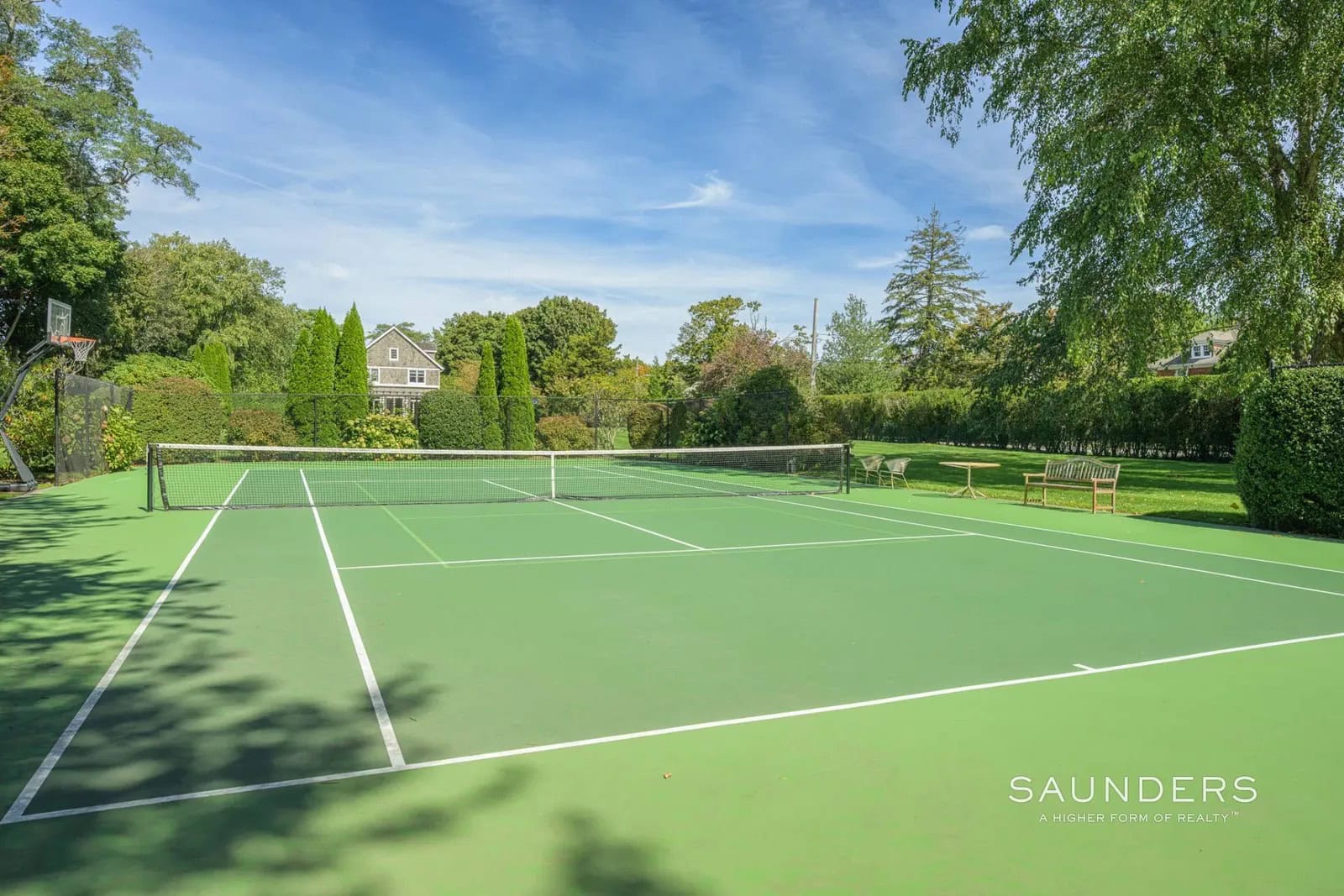 The finished lower level offers a full gym and media room. Outdoors, enjoy the newly updated, saltwater-heated gunite pool and tennis court, set amid a lush, verdant landscape. You may never want to leave, but if you do, restaurants, shops, and galleries are moments away and ocean beaches are in easy reach.