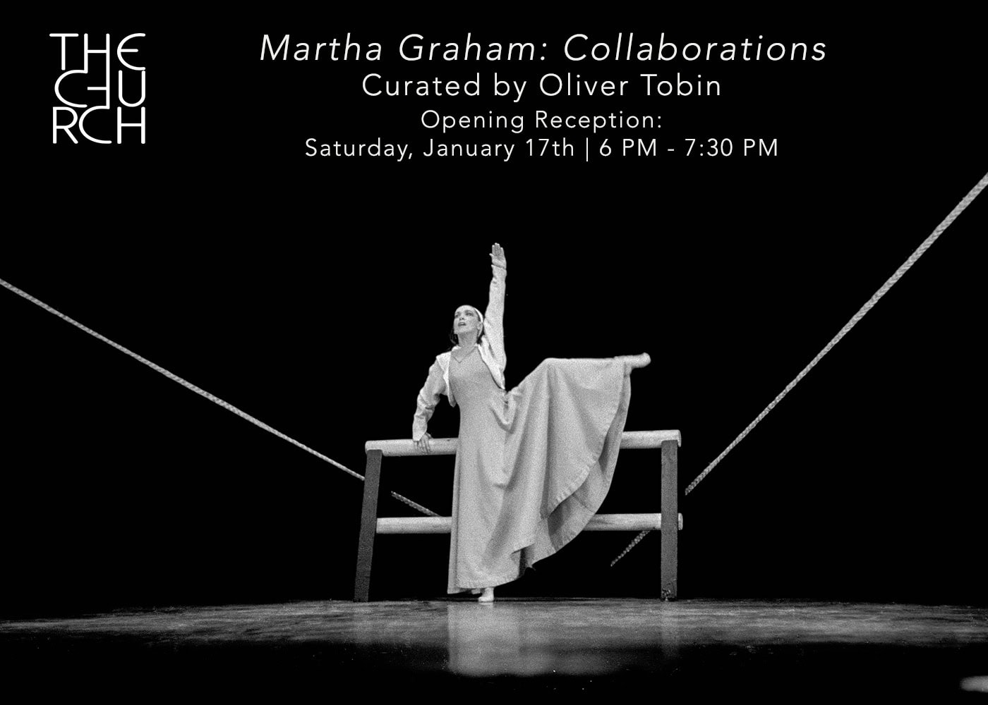 The Church is back! Stop in during our opening reception, any time between 6 PM – 7:30 PM on January 17th to get the first look of our 2026 Winter Exhibition Martha Graham: Collaborations. Coinciding with the 100th anniversary of the founding of Martha Graham Dance Company – The Church’s first ever artists in residence – the exhibition examines the company’s history through the lens of its artistic partnerships. These collaborations generated groundbreaking innovations in dance, sculpture, stage design, lighting, and musical composition.