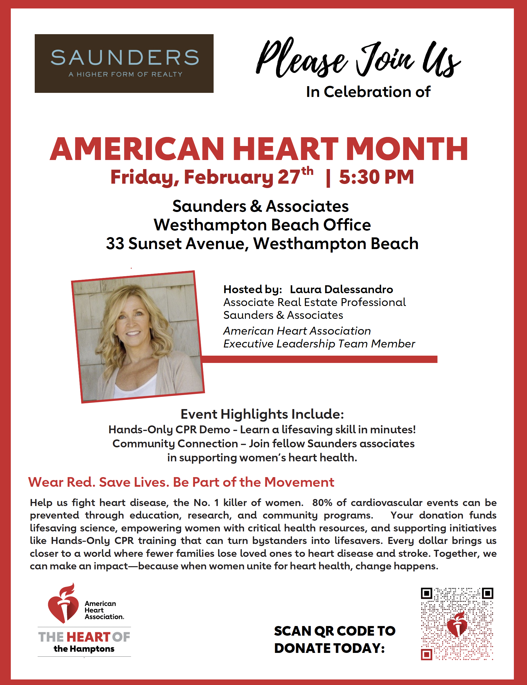 Event Highlights Include: Hands-Only CPR Demo – Learn a lifesaving skill in minutes! Community Connection – Join fellow Saunders associates in supporting women’s heart health.