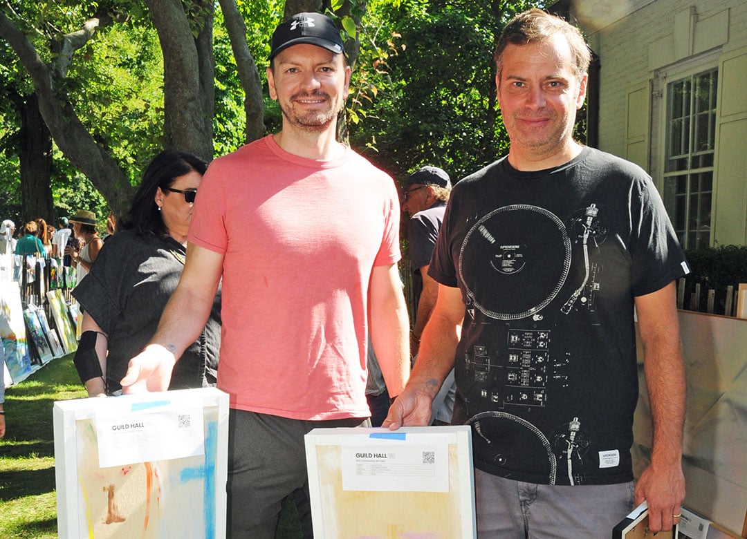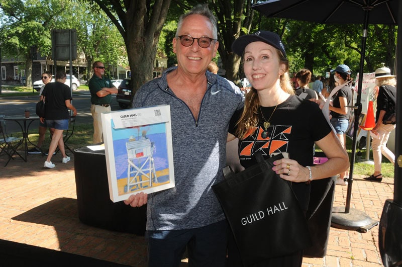 The sign outside Guild Hall says ” Art Lives Here”. On Saturday it meant out in front, where Guild Hall held its 75th Clothesline Art Sale. Original works of art were available for purchase online or in person. Proceeds from sales benefited the Artists and Guild Hall. www.GuildHall.org