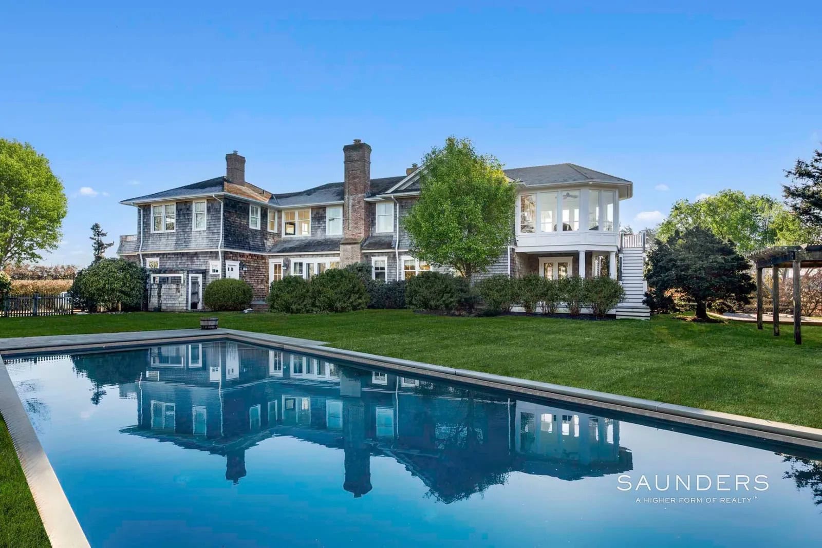 This beautiful location is in one of the most coveted ZIP codes in the country. Sited on nearly an acre, the 4,650 +/- square foot home has been built to maximize the beach experience. Located on a cul-de-sac a short distance to Sagg Main Beach, it features a 45-foot heated gunite pool, multiple decks, and balconies from which to capture magnificent views.