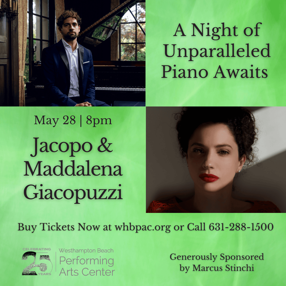 Born to a family of pianists, sibling duo Jacopo and Maddalena Giacopuzzi are the critically acclaimed pianists sweeping the classical music scene by storm! As soloists and chamber musicians, Jacopo and Maddalena have performed recitals at major festivals, venues, and concert halls throughout the United States, Europe and Japan. Jacopo has performed under the direction of world-renowned conductors such as Dian Tchobanov, Robert Wills, and others, while Maddalena distinguished herself by winning awards at some of the most prestigious musical competitions in the world. An evening of incomparable piano awaits with Jacopo & Maddalena.