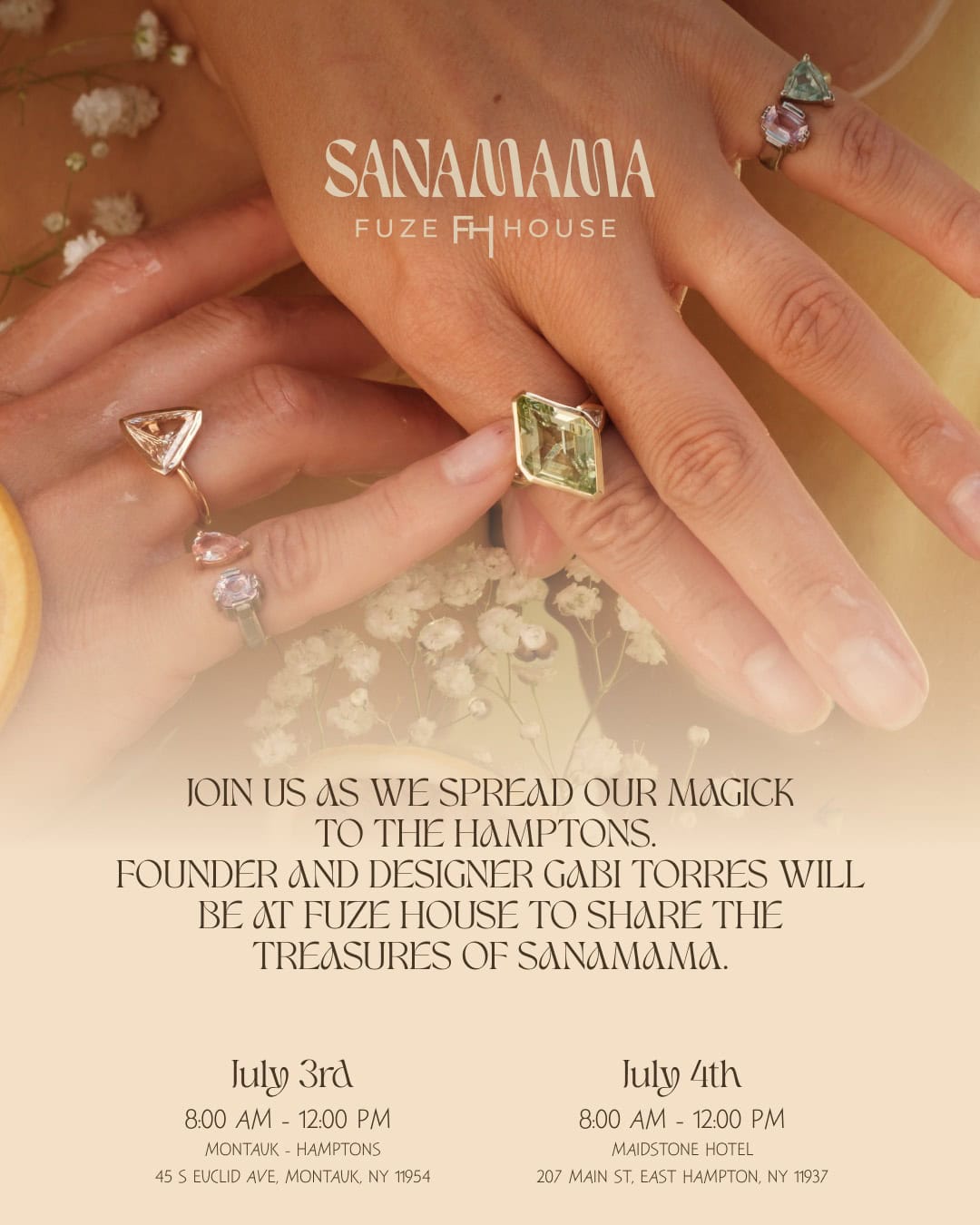 Join SANAMAMA as they spread their magic to the Hamptons. Founder and designer Gabi Torres will share the treasures of Sanamama.