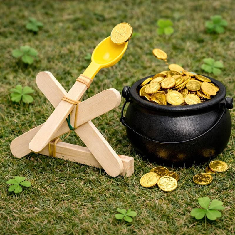 Kids will make a catapult and launch gold coins into the lucky pot!