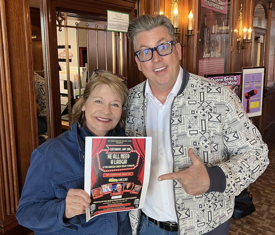 “Laughter is the best medicine and, let’s face it, we could all use a laugh now. These comedians are hilarious,” said Bill Dalton, president of the Westhampton Rotary Club.