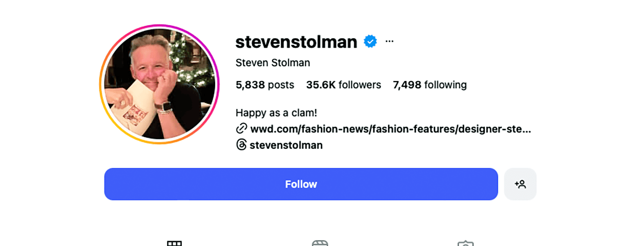 Fashion designer and author Steven Stollman is a Palm Beach staple. With an eye for bold prints and beautiful designs, he weighs in on his Instagram with fashion history lessons and reflections on his career with content that will keep you both informed and entertained.